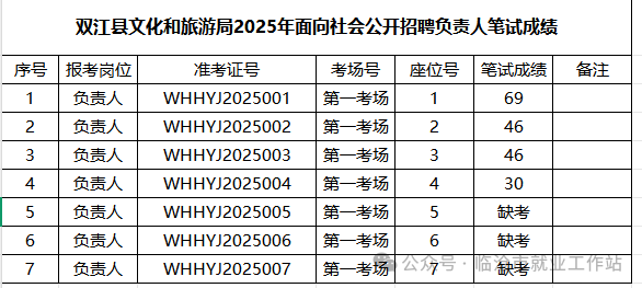 根據(jù)《雙江自治縣文化和旅游局2025年面向社會公開招聘負責人的公告》的相關(guān)要求,通過報名、資格初審、筆試等程序,現(xiàn)將雙江自治縣文化和旅游局2025年面向社會公開招聘負責人筆試成績公示如下(詳見附件),公示期為3天(2025年01月17日-01月19日),在公示期內(nèi)如有異議,請以書面形式,并署真實姓名和聯(lián)系地址送到云南宏華人力資源有限公司雙江分公司辦公室,電話0883-7629958,逾期不予受理。