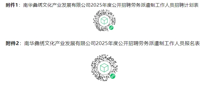 南華彝繡文化產(chǎn)業(yè)發(fā)展有限公司2025年度計(jì)劃招聘勞務(wù)派遣員工3名,具體招聘崗位及招聘條件要求詳見附件1(南華彝繡文化產(chǎn)業(yè)發(fā)展有限公司2025年度公開招聘勞務(wù)派遣制工作人員招聘計(jì)劃表)。