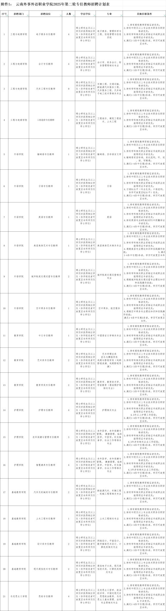 附件1: 云南外事外語職業(yè)學(xué)院2025年第二輪專任教師招聘計(jì)劃表.xlsx