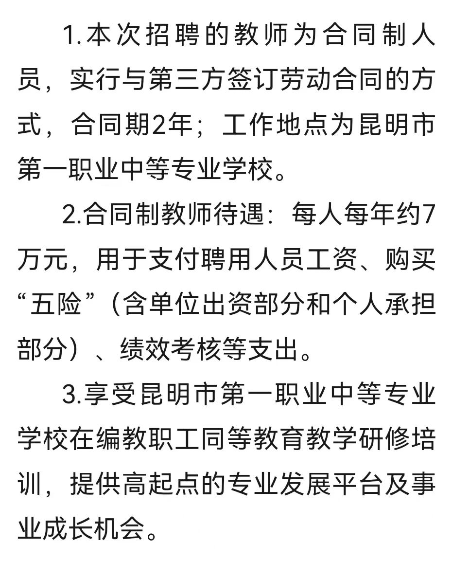 云南省昆明市第一職業(yè)中等專業(yè)學(xué)校2025年公開招聘合同制教師公告