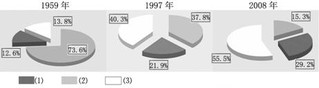 25.材料二反映了西藏:①1959年,是一個(gè)典型的農(nóng)業(yè)社會(huì) ②產(chǎn)業(yè)結(jié)構(gòu)變化以工業(yè)拉動(dòng)為主 ③第三產(chǎn)業(yè)比例變化最大 ④經(jīng)濟(jì)結(jié)構(gòu)已實(shí)現(xiàn)了從以生產(chǎn)型產(chǎn)業(yè)為主向以服務(wù)型產(chǎn)業(yè)為主的轉(zhuǎn)變。其中正確的是 ( )