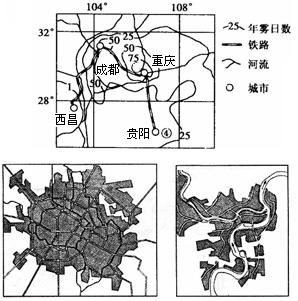 27.讀我國某地區(qū)年霧日天數(shù)等值線圖及成都、重慶城市地域結(jié)構(gòu)示意圖,回答問題。(16分)