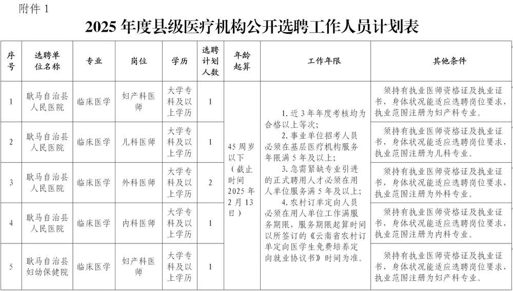 1.2025年度縣級醫(yī)療機(jī)構(gòu)公開選聘工作人員計劃表.doc