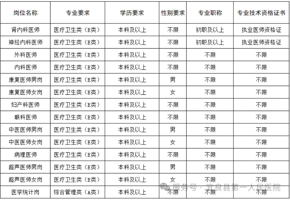 宜良縣第一人民醫(yī)院2025年招聘工作人員公告