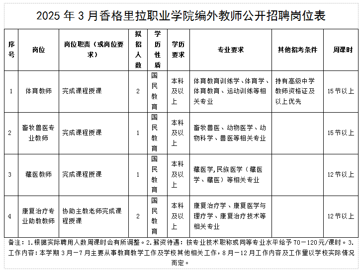 香格里拉職業(yè)學(xué)院公開(kāi)招聘編外教師公告