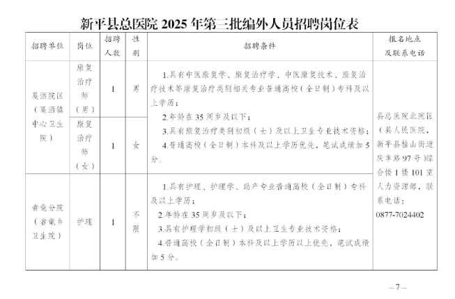 附:新平縣總醫(yī)院2025年第三批編外人員招聘崗位表