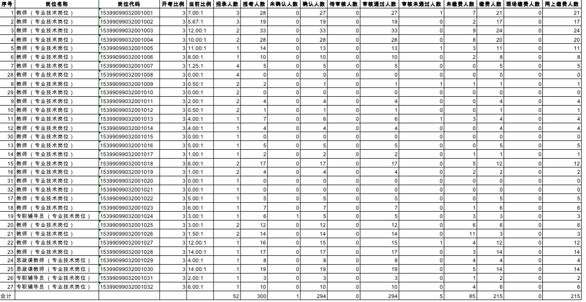 公開(kāi)招聘人員報(bào)名、繳費(fèi)情況統(tǒng)計(jì)