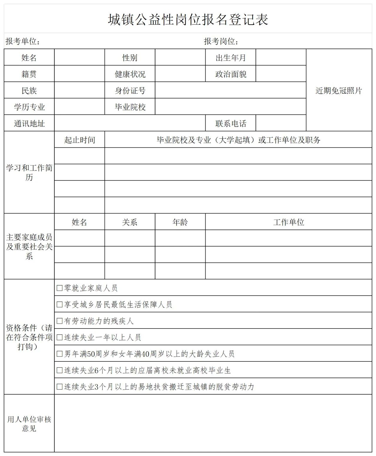 所有材料拍照(或掃描)與《城鎮(zhèn)公益性崗位報(bào)名登記表》(文末附件)一起打包后統(tǒng)一發(fā)送至郵箱:qjdlzx@126.com;也可帶上相關(guān)材料到巧家縣第六中學(xué)辦公室二樓現(xiàn)場(chǎng)報(bào)名。