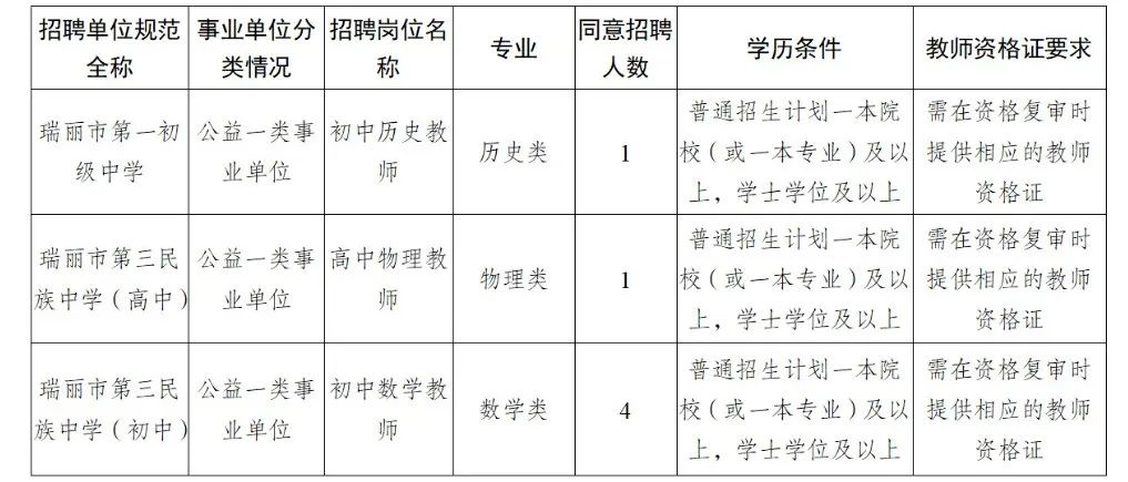 3.部分崗位學(xué)歷條件有變化的以《2025年德宏州教育部門考核招聘緊缺專業(yè)學(xué)科優(yōu)秀人才崗位計(jì)劃表》所列為準(zhǔn)。