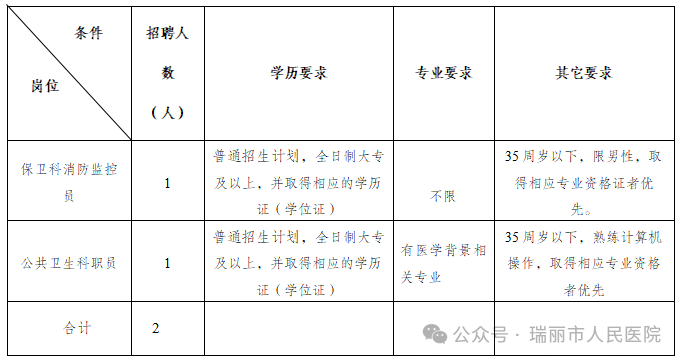 瑞麗市人民醫(yī)院2025年度合同制聘用人員招聘公告
