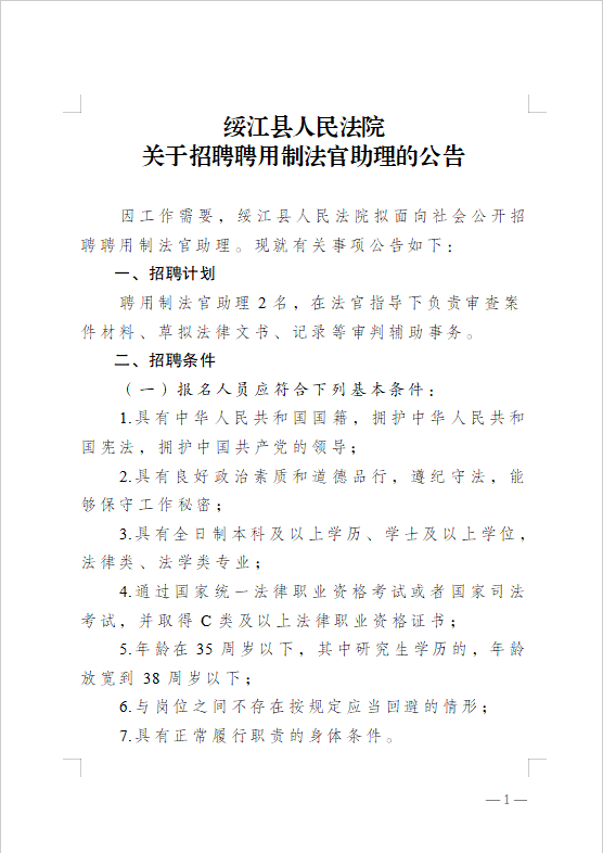 綏江縣人民法院關于招聘聘用制法官助理的公告