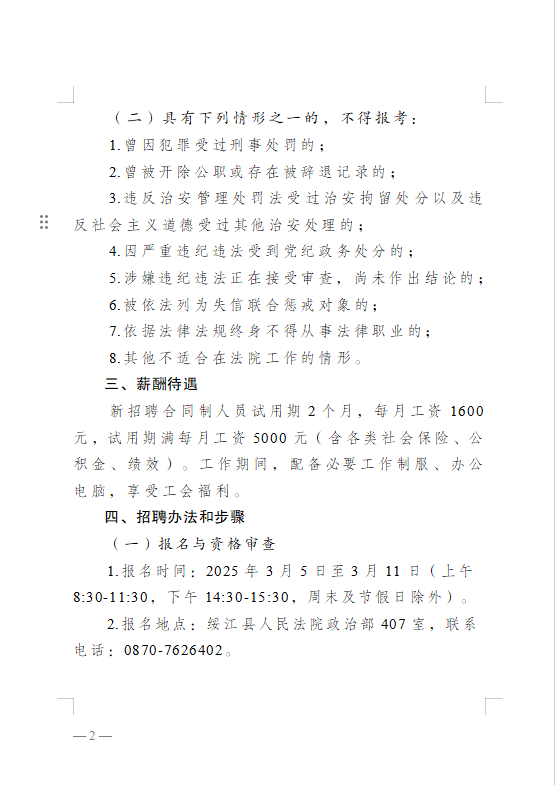2025年昭通市綏江縣人民法院招聘聘用制法官助理公告