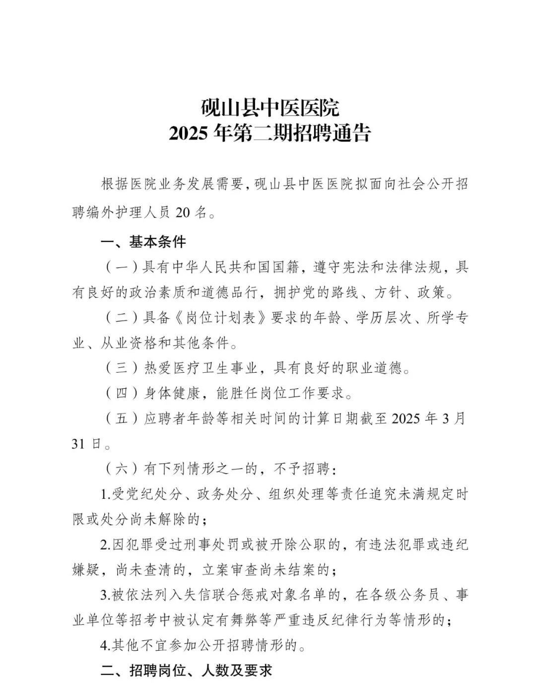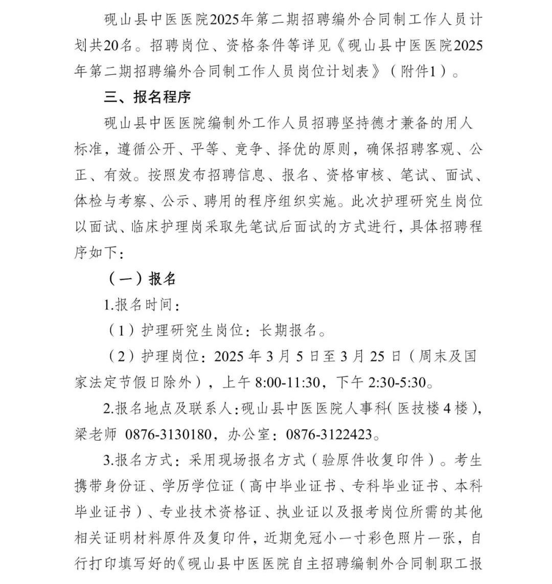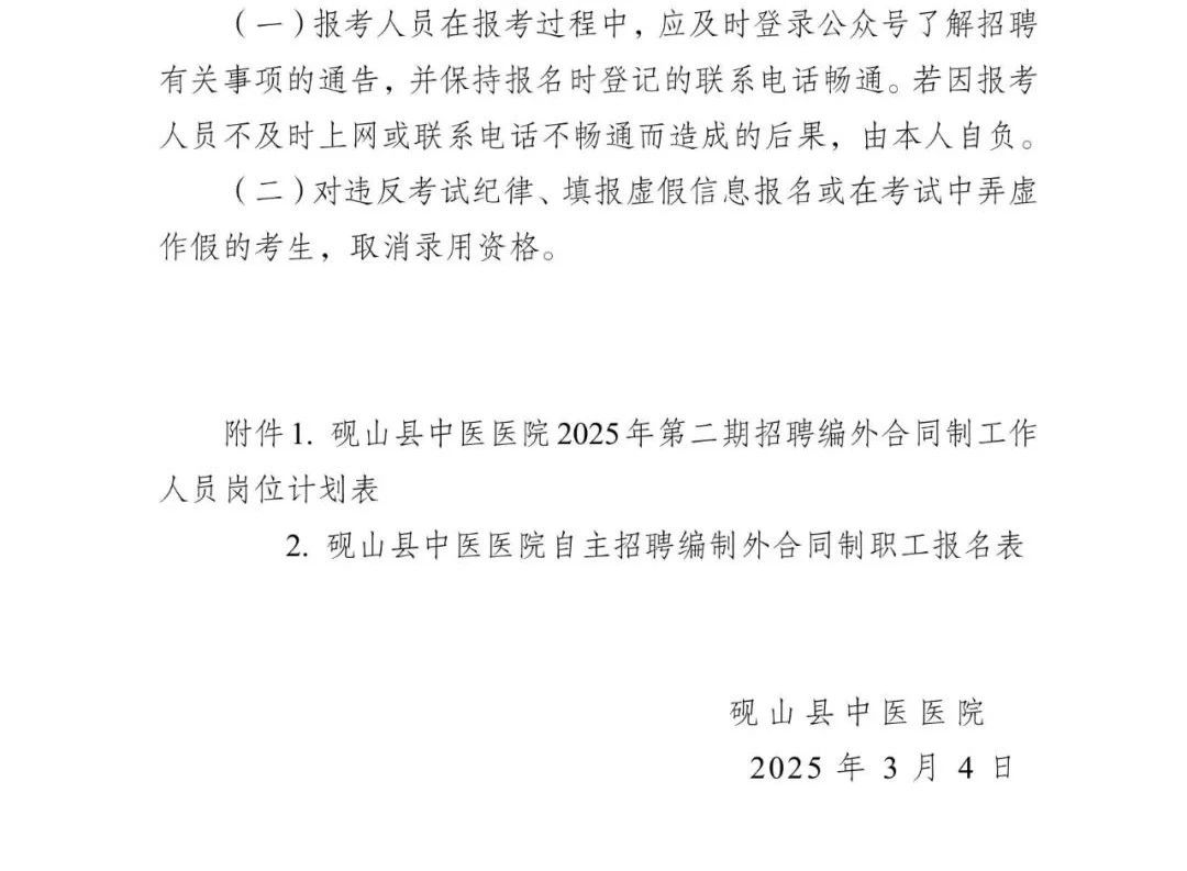 硯山縣中醫(yī)醫(yī)院2025年第二期招聘通告