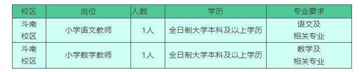 經(jīng)教育主管部門同意,根據(jù)學(xué)校2025年春季學(xué)期建設(shè)發(fā)展需要,現(xiàn)面向社會公開招聘斗南校區(qū)聘用制教師2人。
