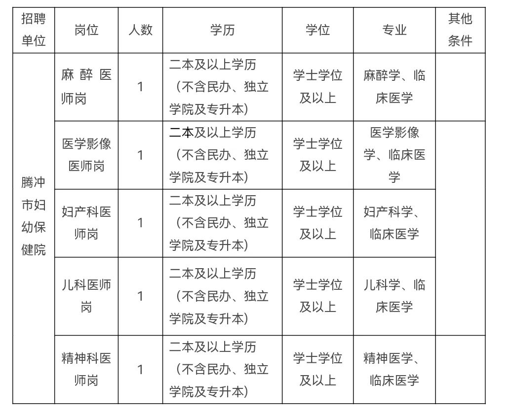 騰沖市婦幼保健院2025年校園招聘合同制人員公告