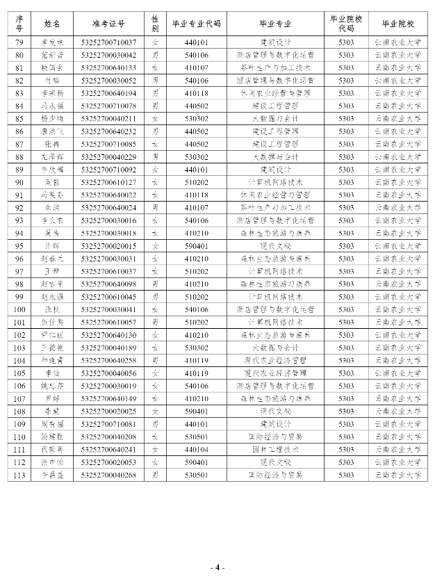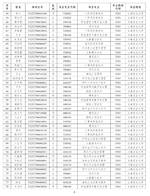 附件:云南農(nóng)業(yè)大學(xué)2025年專升本原建檔立卡考生名單