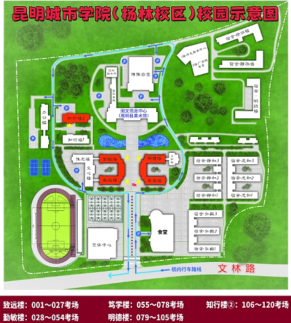 云南城市建設(shè)職業(yè)學(xué)院的考生(含自駕)從正門(文林路)進(jìn)入考點(diǎn),校內(nèi)可少量停車。