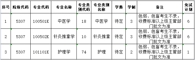 2025年云南中醫(yī)藥大學(xué)云南省“專升本”招生專業(yè)免試計(jì)劃公示