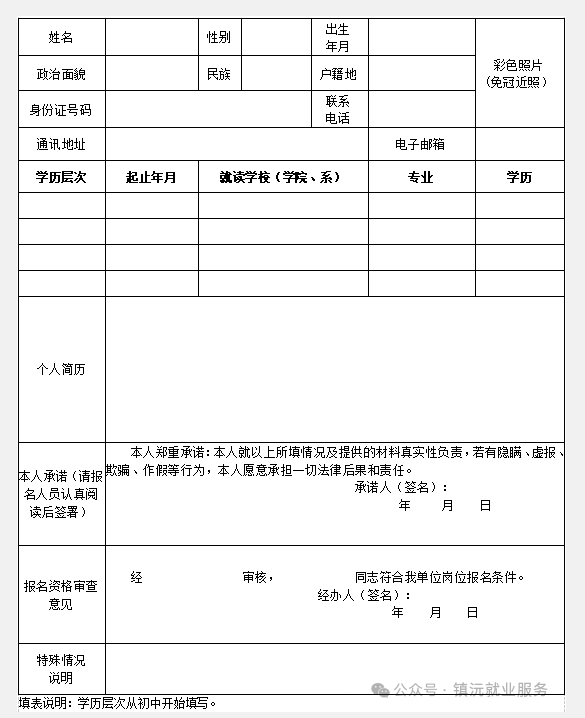 附件:2025年中國共產(chǎn)黨鎮(zhèn)沅彝族哈尼族拉祜族自治縣委員會(huì)統(tǒng)一戰(zhàn)線工作部公益性崗位招聘報(bào)名表