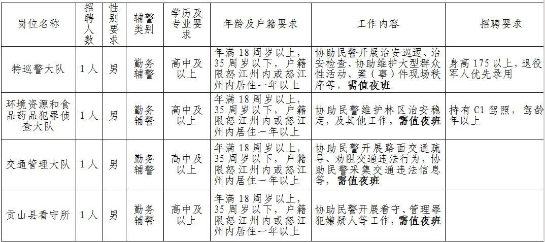 貢山縣公安局公開招聘4名警務(wù)輔助人員公告