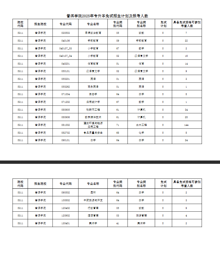 附件【普洱學院2025年專升本免試招生計劃及報考人數(shù).pdf】