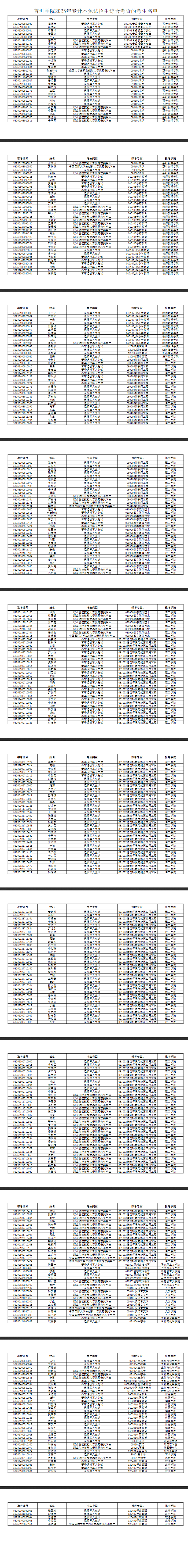 普洱學院2025年專升本免試招生綜合考查的考生名單如下表: