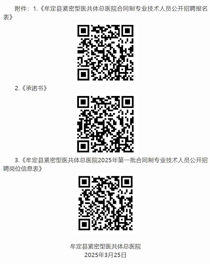 具體招聘崗位、人數(shù)、專業(yè)、條件等詳見(jiàn)《牟定縣緊密型醫(yī)共體總醫(yī)院2025年第一批合同制專業(yè)技術(shù)人員公開招聘崗位信息表》。