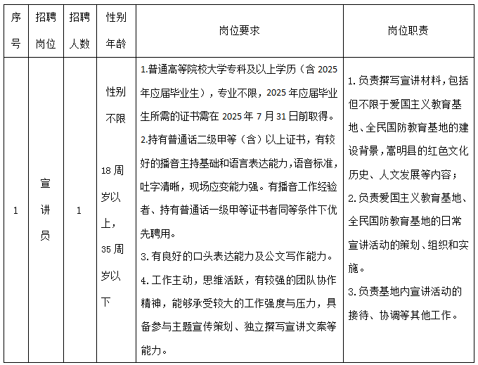宣講員1名,詳見云南琞源商業(yè)運營管理有限公司公開招聘派遣制宣講員招聘計劃表(附件1)。