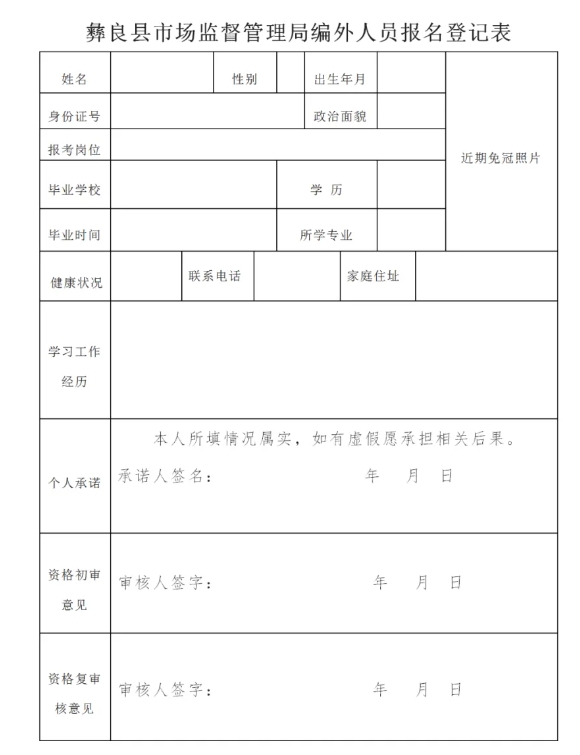 (3)《彝良縣市場監(jiān)督管理局編外人員公開報名登記表》;