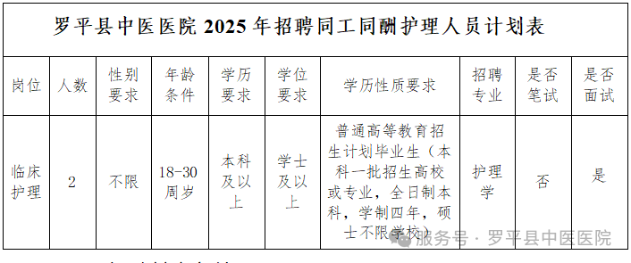 羅平縣中醫(yī)醫(yī)院2025年同工同酬編制外護理人員招聘公告