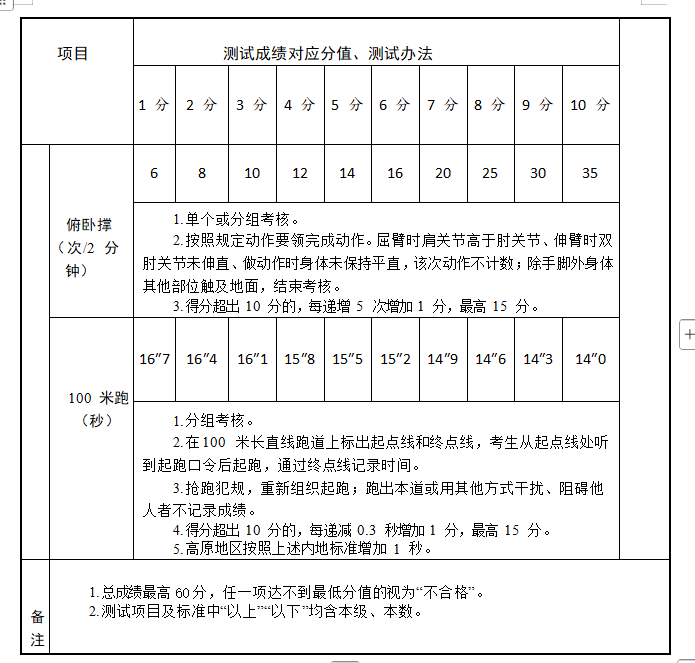 體能測(cè)試項(xiàng)目及標(biāo)準(zhǔn)
