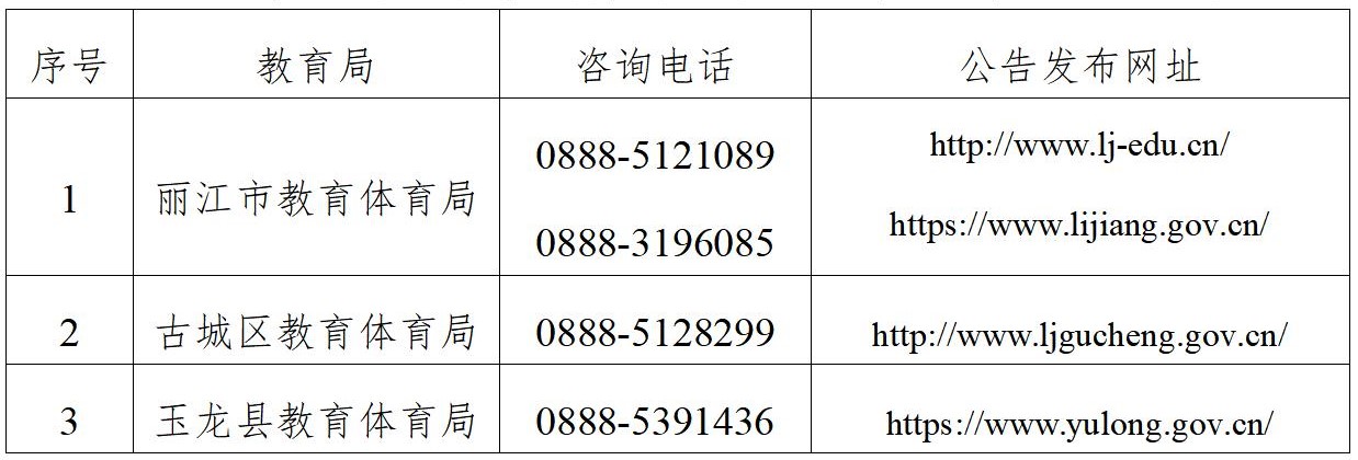 幼兒園、小學(xué)和初級中學(xué)教師資格由玉龍縣教育體育局認(rèn)定。