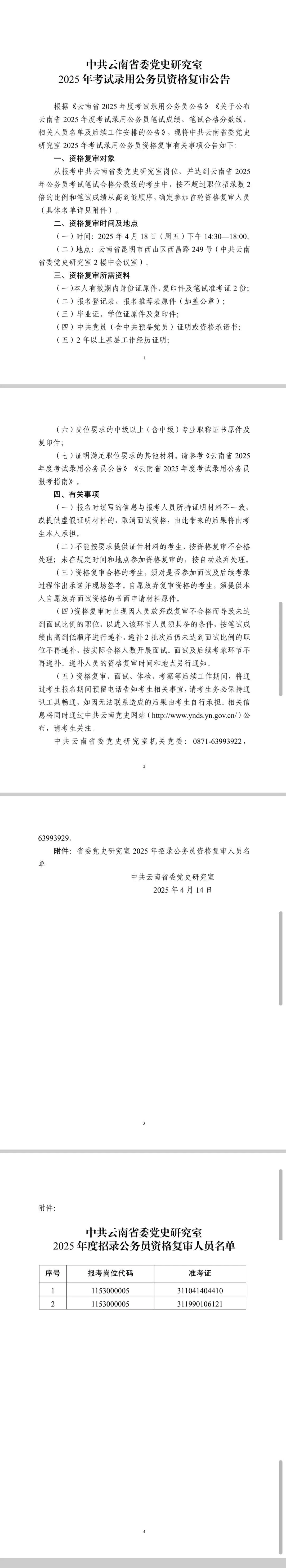 中共云南省委黨史研究室2025年考試錄用公務(wù)員資格復(fù)審公告
