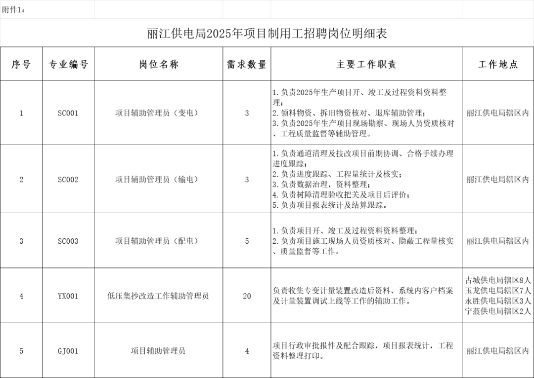 附件1 麗江供電局2025年項目制用工招聘崗位明細(xì)表