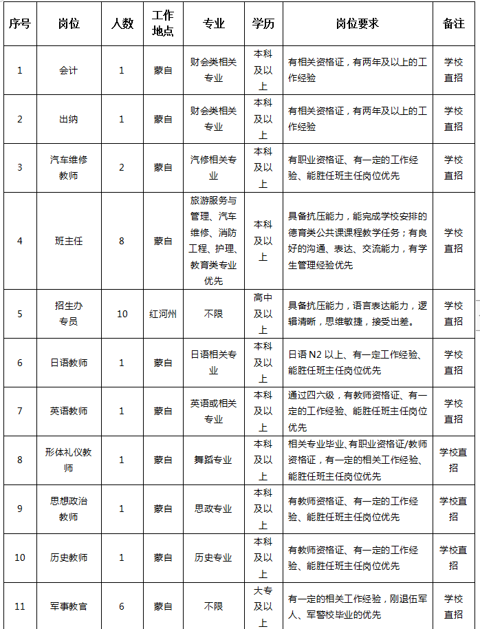 備注:以上崗位均為學(xué)校直招的崗位,符合要求再投遞簡歷,非誠勿擾。
