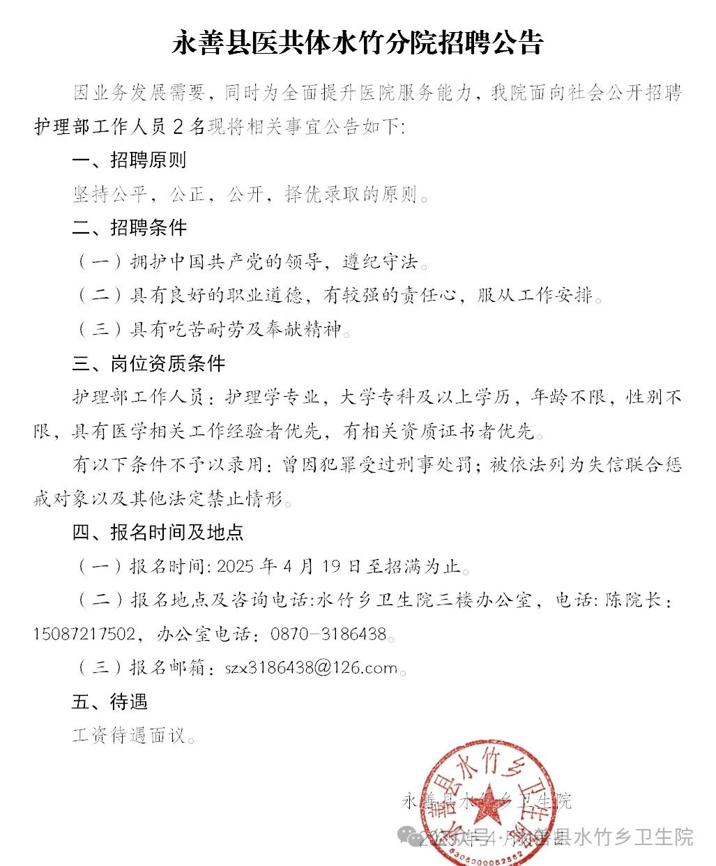 永善縣醫(yī)共體水竹分院招聘公告