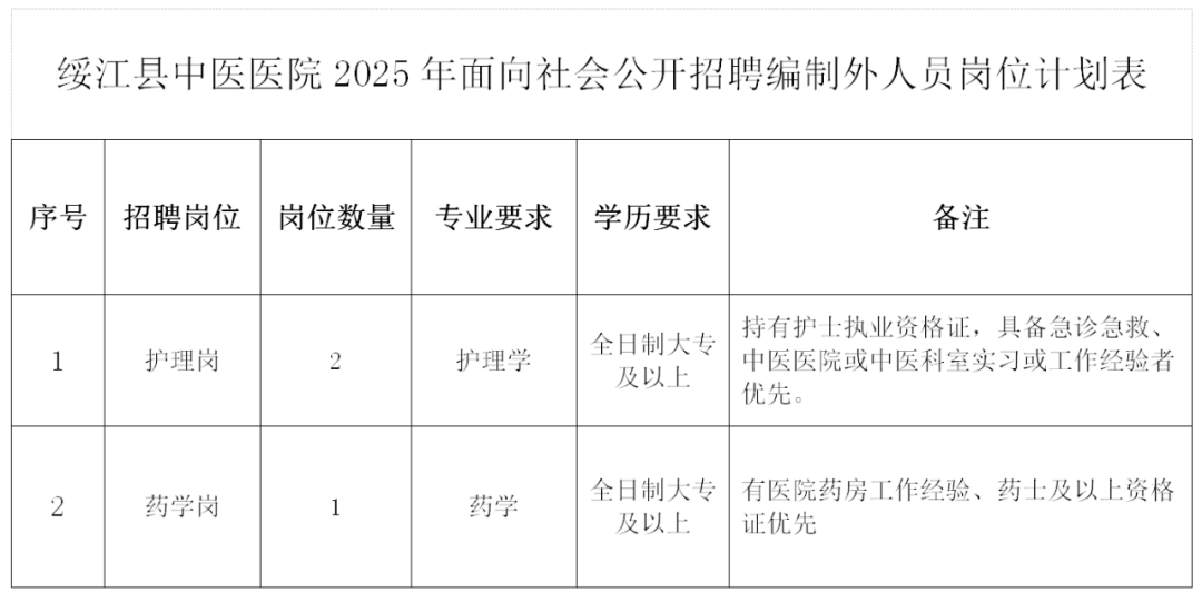綏江縣中醫(yī)醫(yī)院公開招聘編外人員的公告