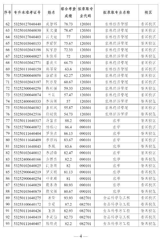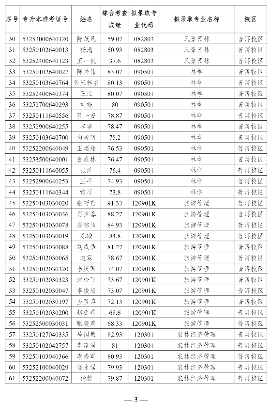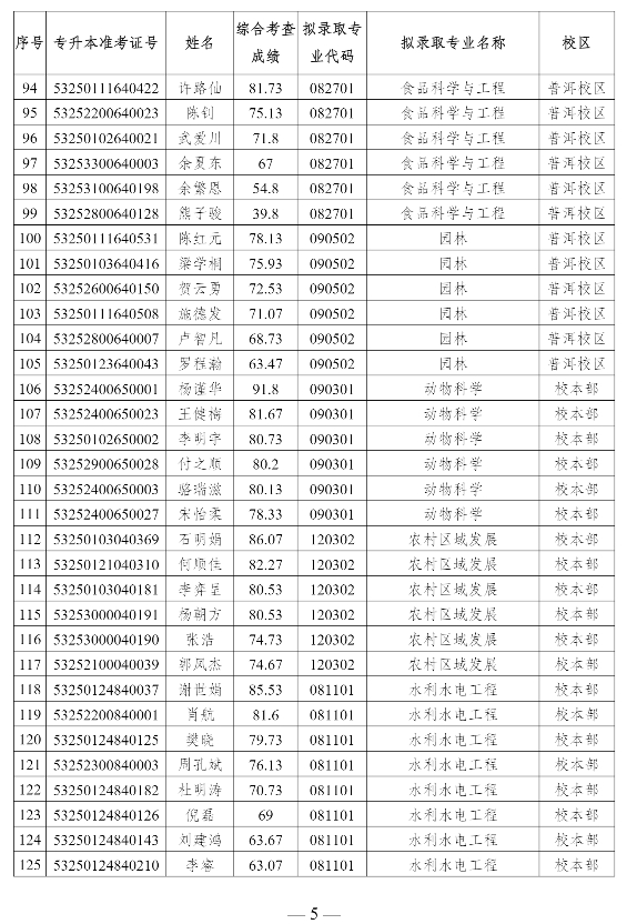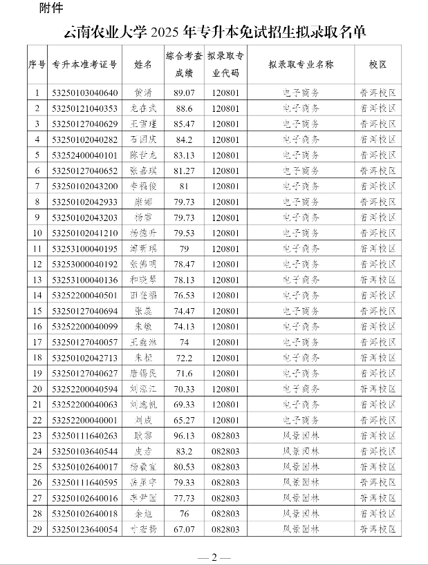 附件:云南農(nóng)業(yè)大學(xué)2025年專升本免試招生擬錄取名單