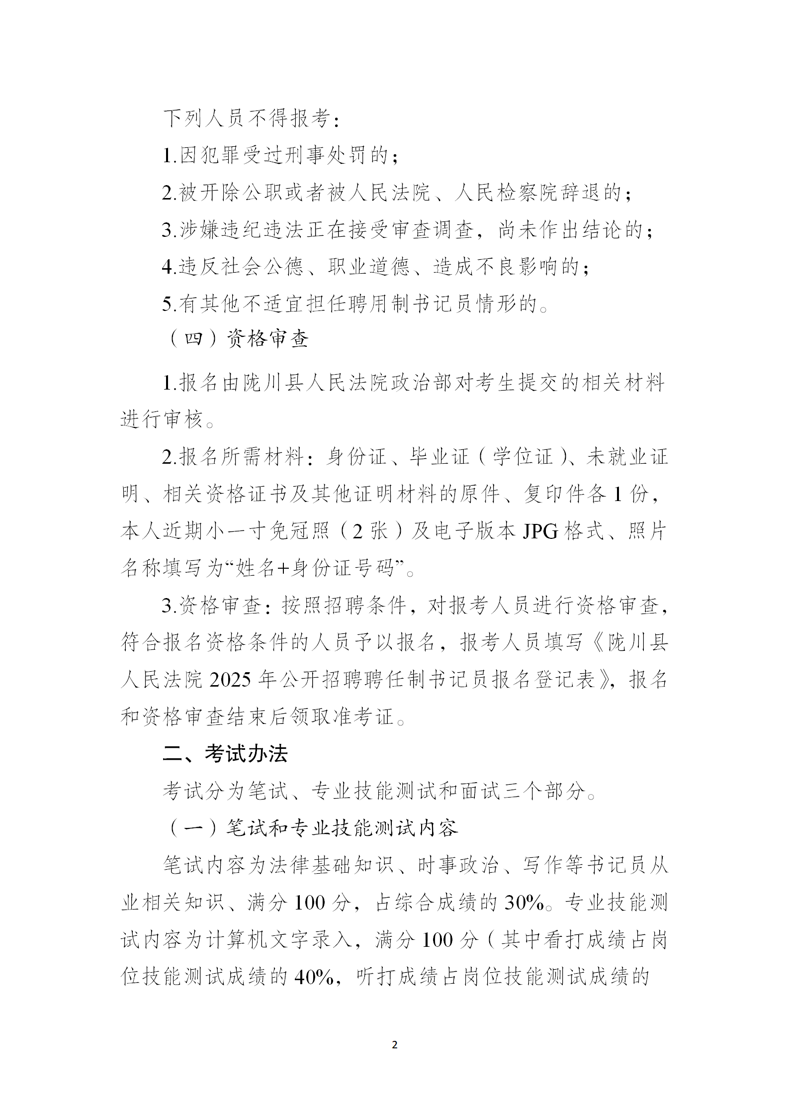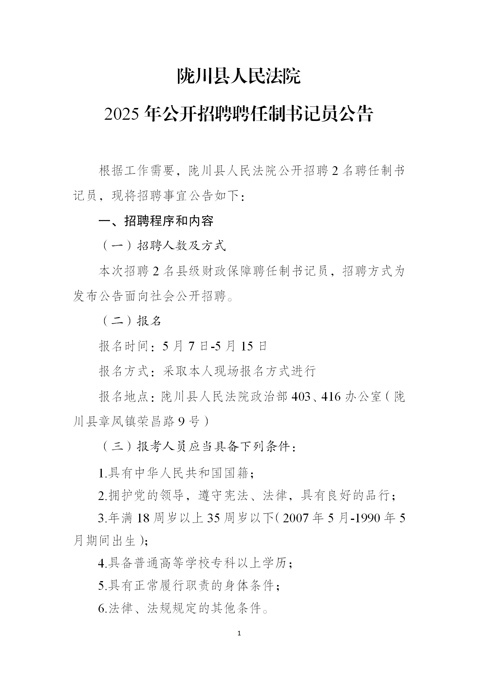 隴川縣人民法院2025年公開招聘聘任制書記員公告