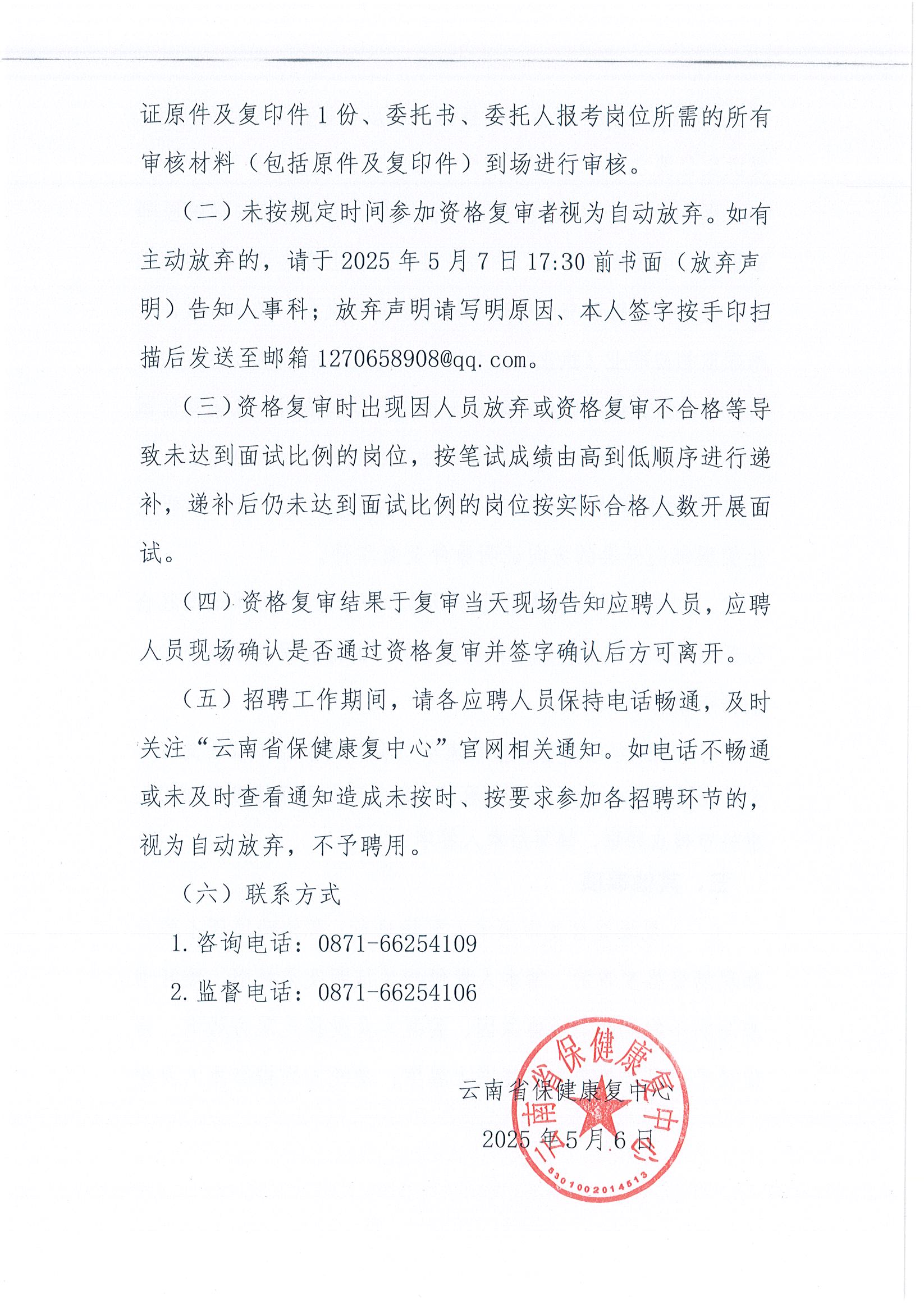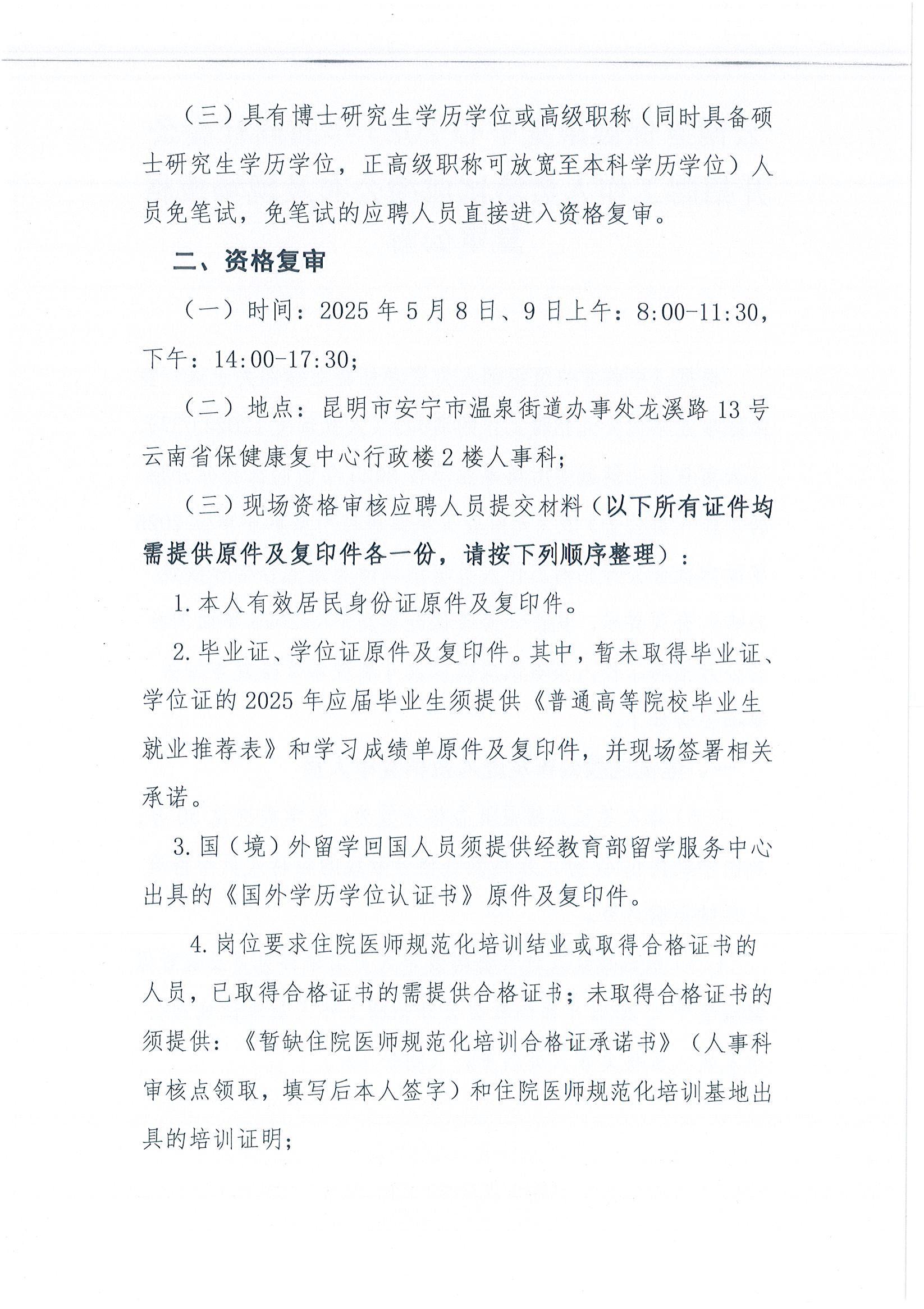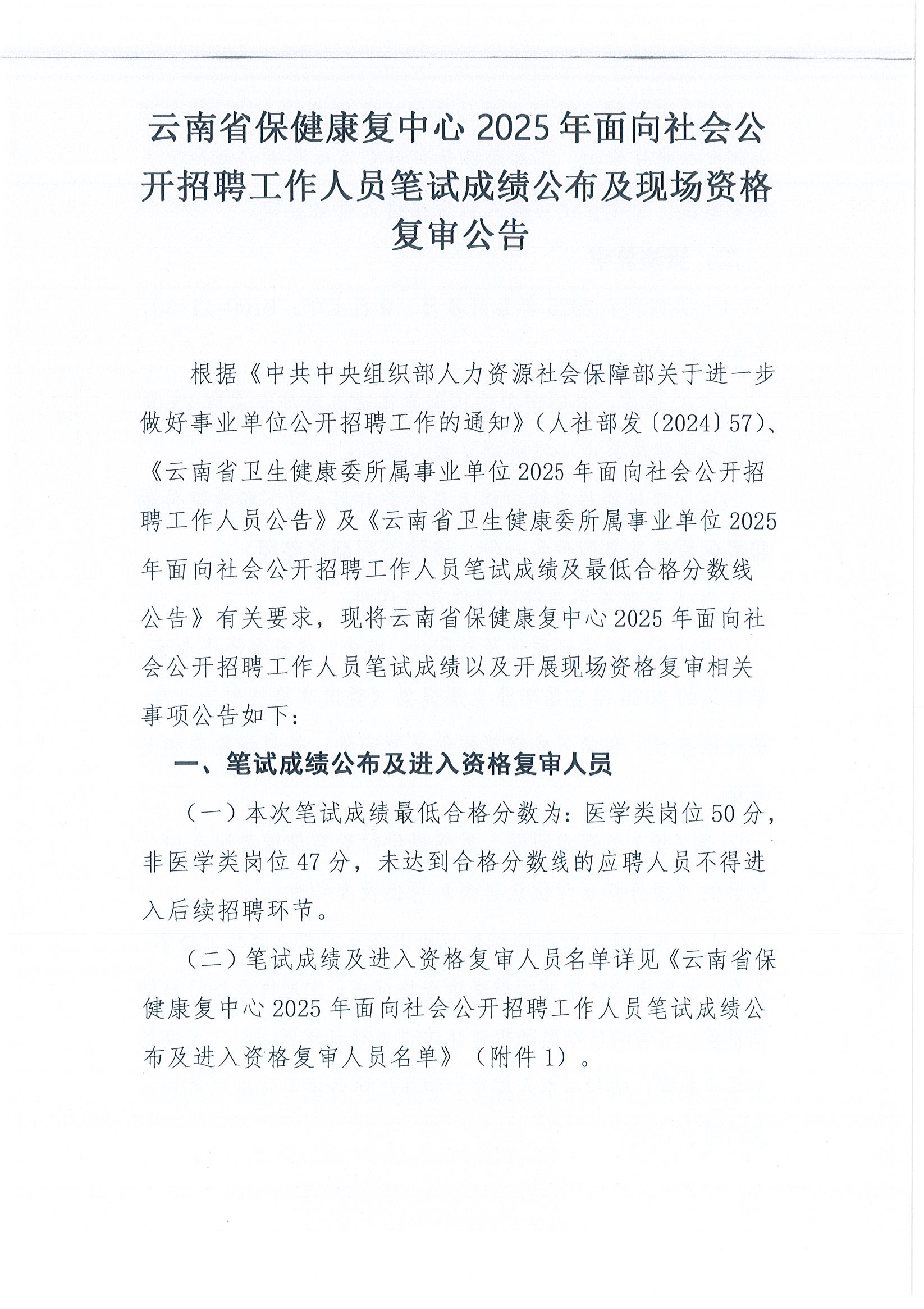 2025年云南省保健康復(fù)中心招聘筆試成績公布及現(xiàn)場資格復(fù)審公告