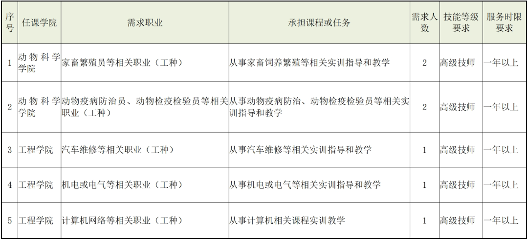 大理農(nóng)林職業(yè)技術(shù)學(xué)院招募2025年“銀齡教師”7名。具體招募崗位及招募資格條件如下: