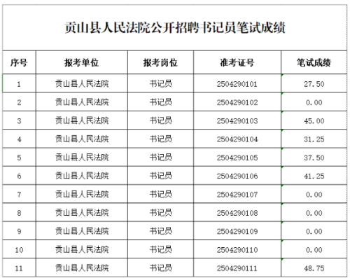 貢山縣人民法院公開招聘書記員筆試成績(jī)公示