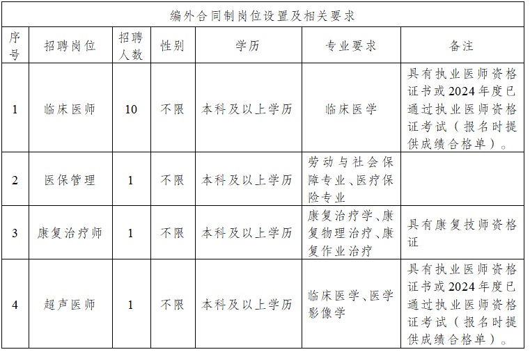 6.已有工作單位者在聘用時需與原單位解除合同并確保無其他人事、醫(yī)療等糾紛。