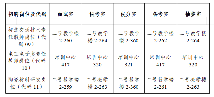 報(bào)考智慧交通技術(shù)專任教師崗位(代碼09),電工電子類專任教師崗位(代碼10),陶瓷材料研發(fā)崗位(代碼11)符合報(bào)考條件并通過資格復(fù)審的人員。