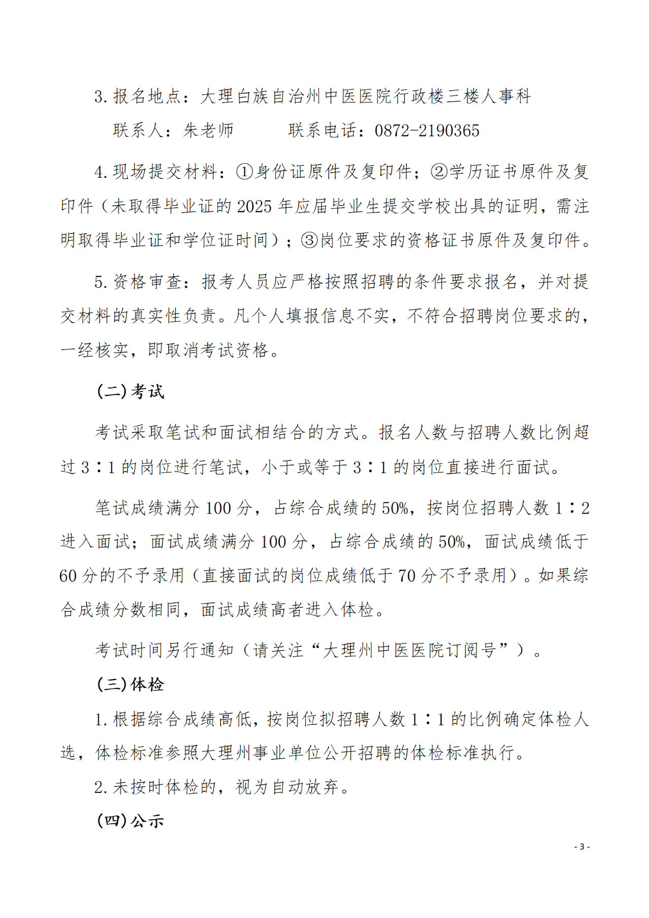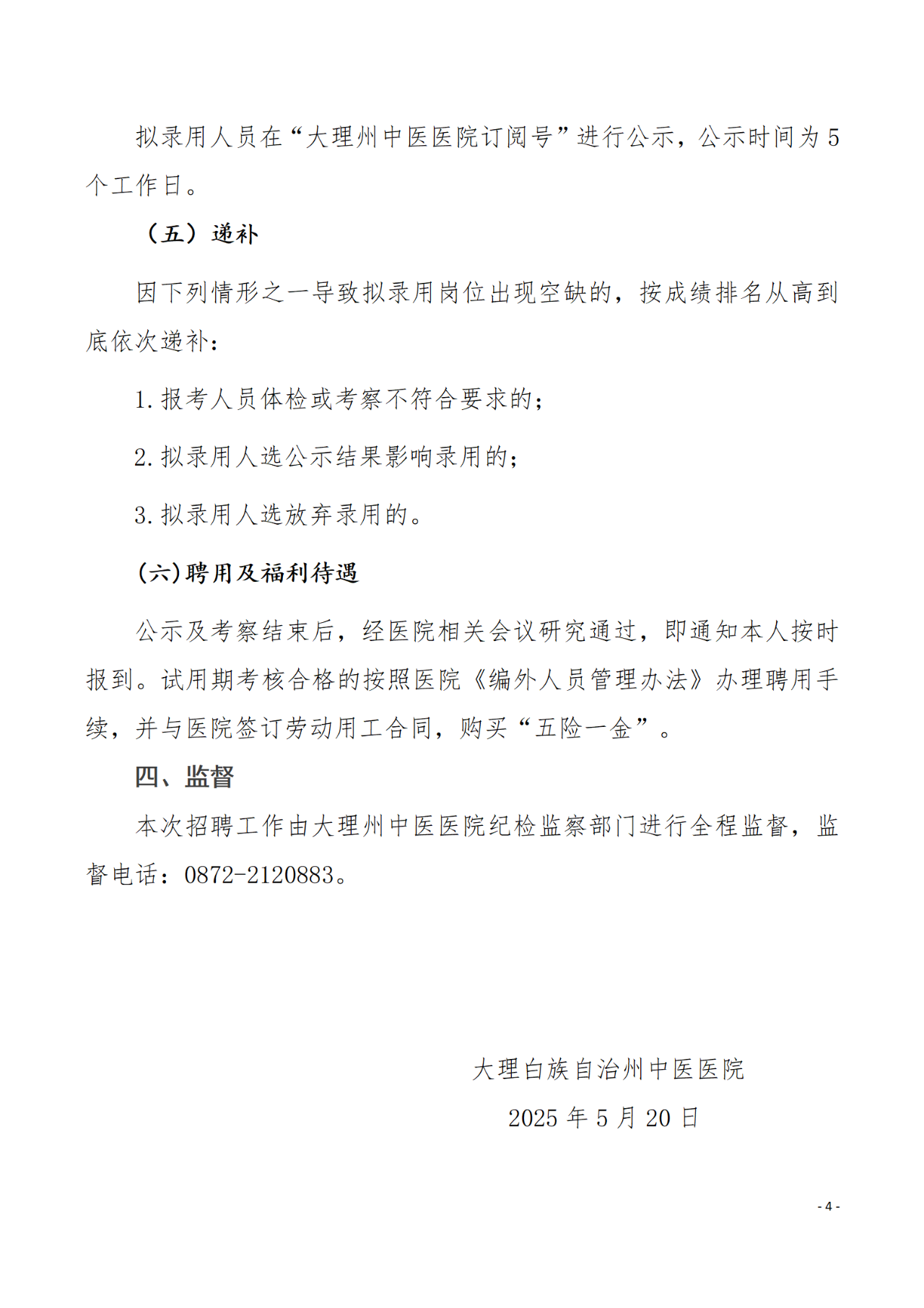 大理州中醫(yī)醫(yī)院2025年公開招聘編制外工作人員(第一批)的公告