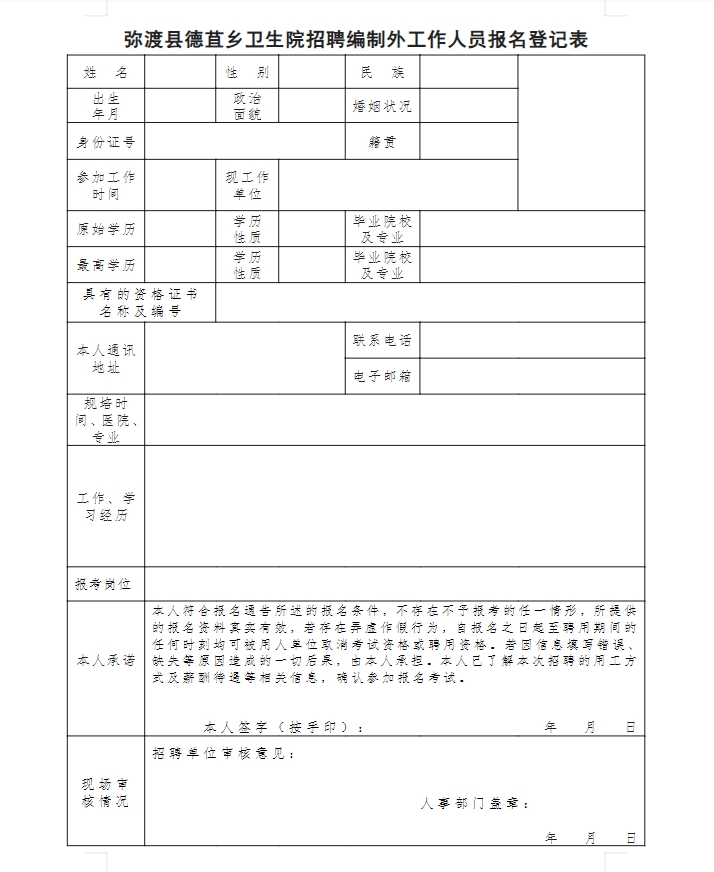 彌渡縣德苴鄉(xiāng)衛(wèi)生院公開招聘編制外專業(yè)技術人員公告