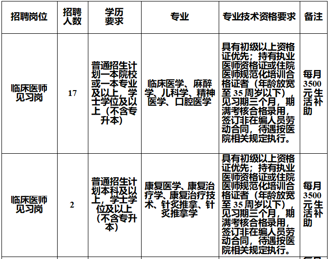 (二)見習(xí)期間給予相應(yīng)生活補(bǔ)助費(fèi),臨床醫(yī)師見習(xí)崗每人每月不低于3500元;大學(xué)生就業(yè)見習(xí)崗、綜合服務(wù)就業(yè)見習(xí)崗每人每月不低于2500元(大學(xué)生就業(yè)見習(xí)崗中屬臨床醫(yī)院專業(yè)普通招生計劃一本院校(或一本專業(yè))及以上、學(xué)士學(xué)位及以上的每人每月不低于3500元)。