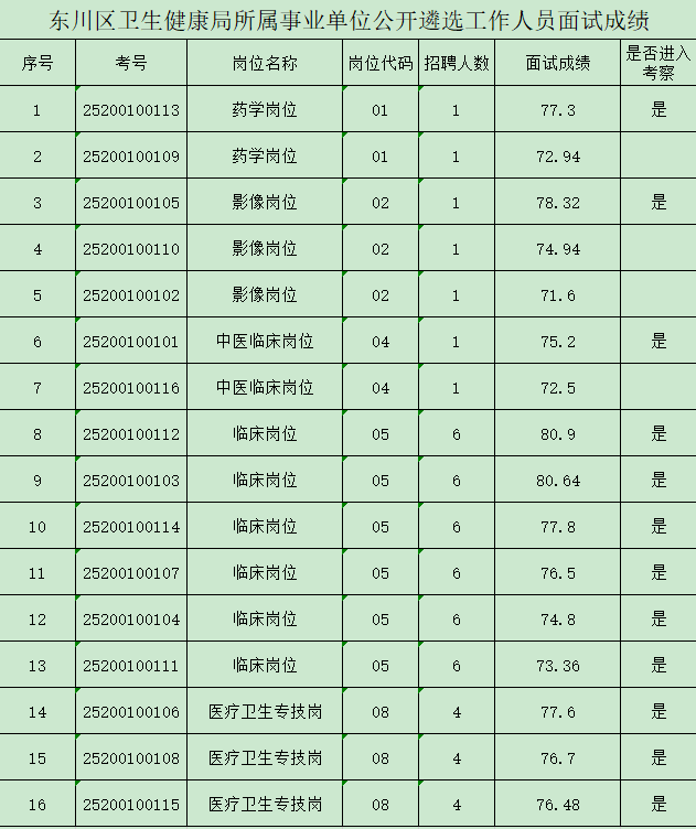 東川區(qū)衛(wèi)生健康局所屬事業(yè)單位公開遴選工作人員面試成績公示