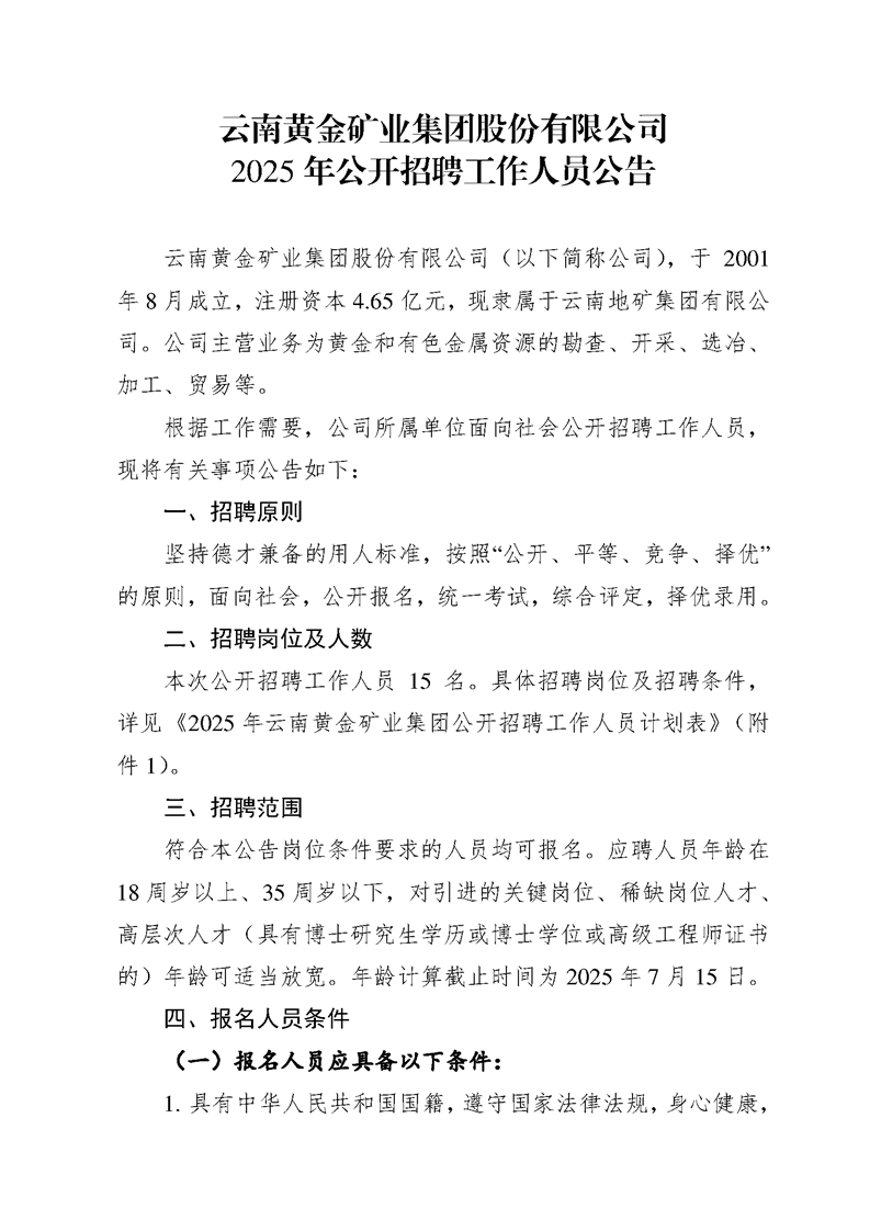 附件1 2025年云南黃金礦業(yè)集團(tuán)公開招聘工作人員計(jì)劃表.xlsx