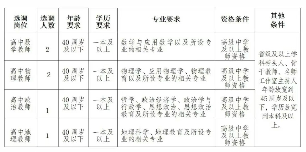 堅持德才兼?zhèn)?、以德為先的用人標準,遵循公開、平等、競爭、擇優(yōu)的原則,采取考試和考察的辦法,面向全國范圍內(nèi)事業(yè)單位選調(diào)在編在崗優(yōu)秀高中教師。